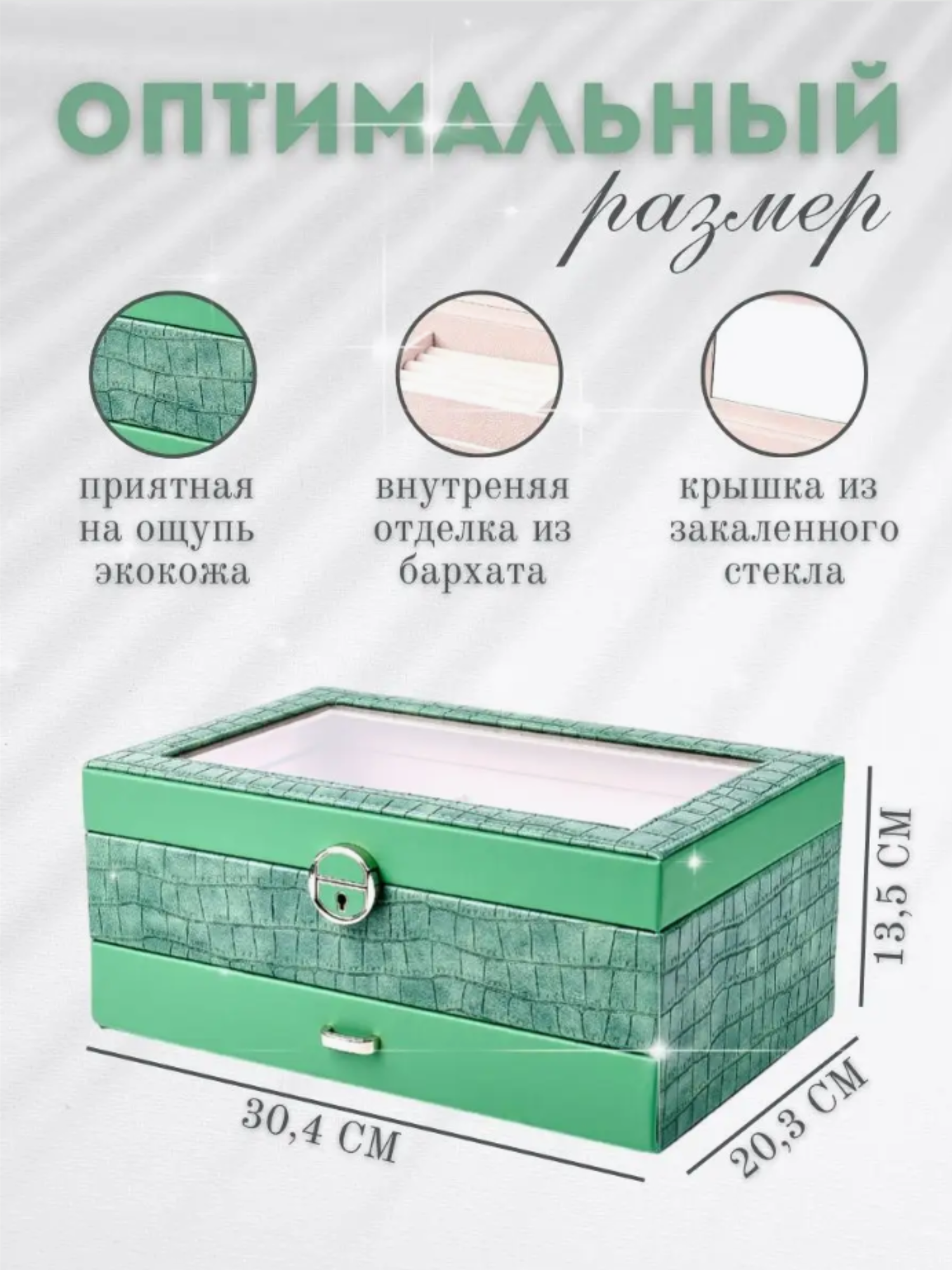 Шкатулка для украшений и часов SAVEZ зеленая информация: