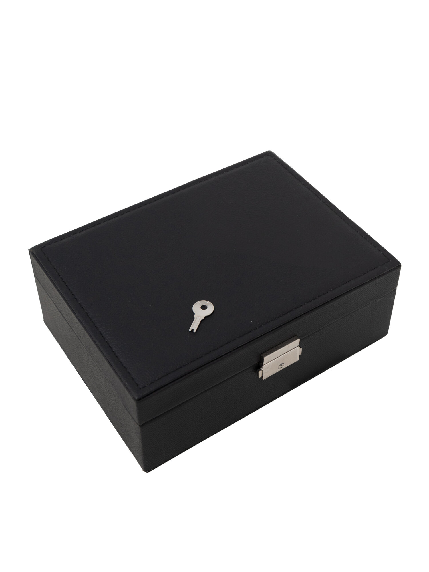 Шкатулка для украшений, бокс для хранения бижутерии, эко-кожа, черная, 14 отделений, 2 яруса, на замке информация: