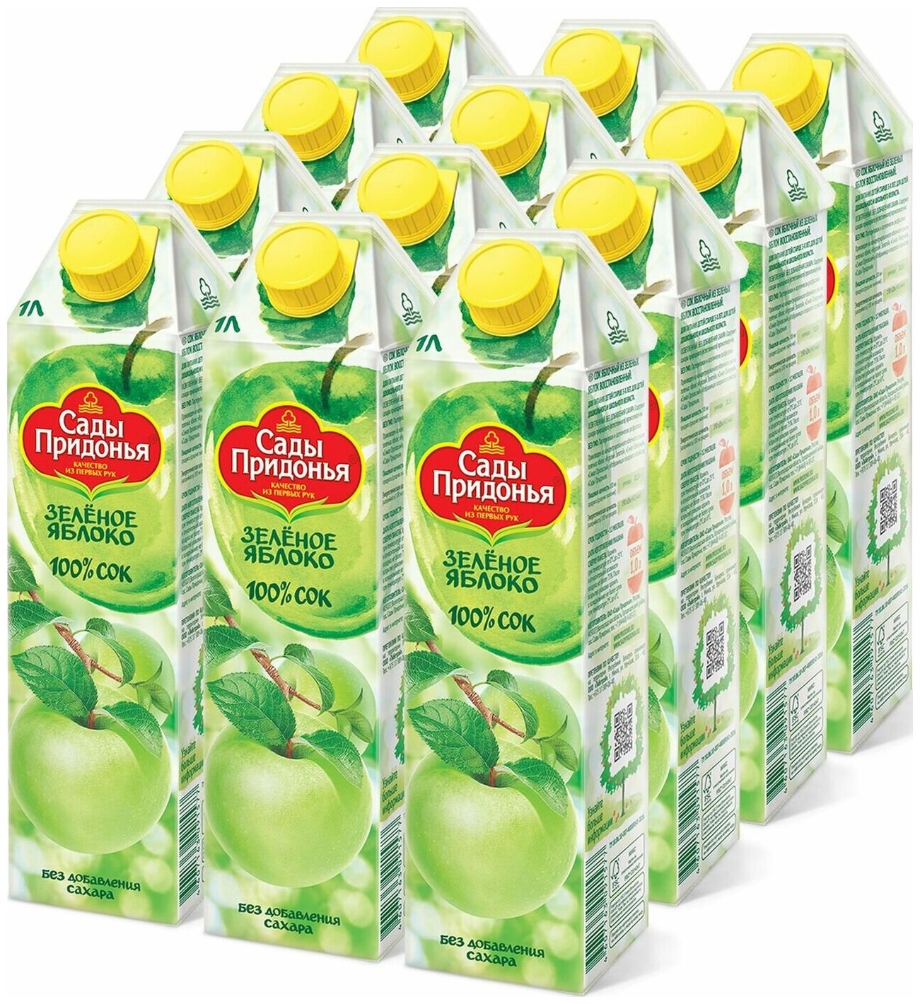 Сок яблочный из зел. яблок осветленный "Сады Придонья", 12 шт. по 1л информация: