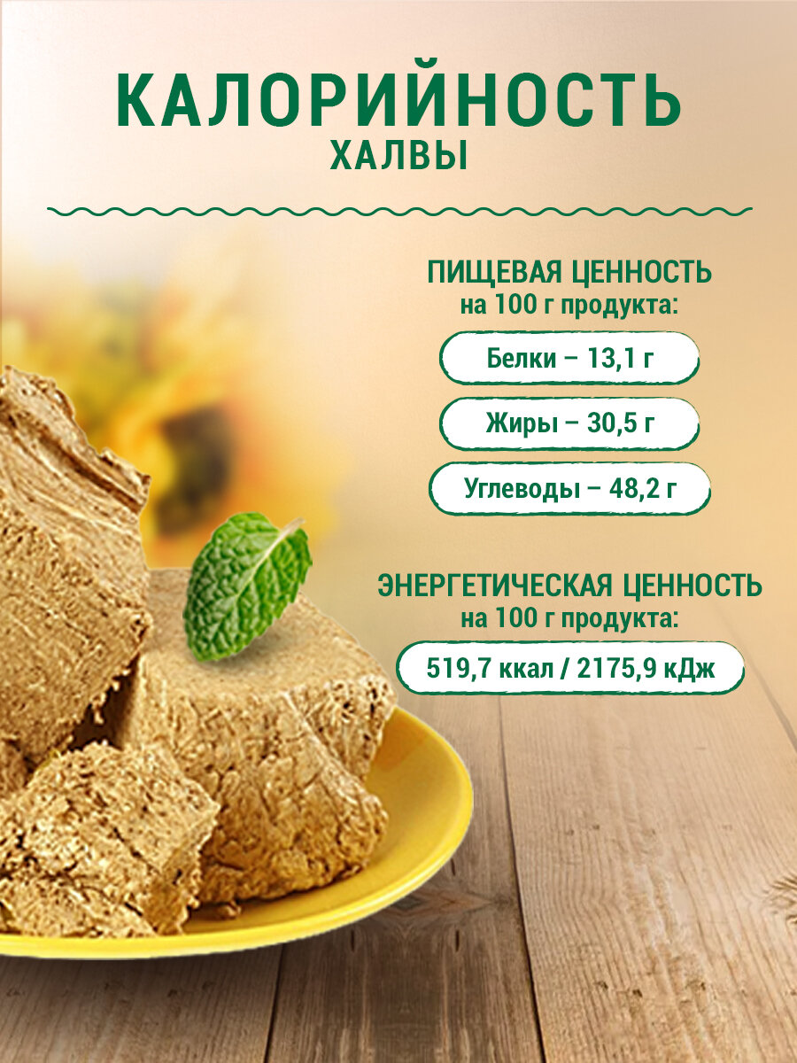 | Состав | Ядро подсолнечника тертое, патока, сахар-песок, пенообразователь-экстракт мыльного корня, ароматизатор «ванилин». |