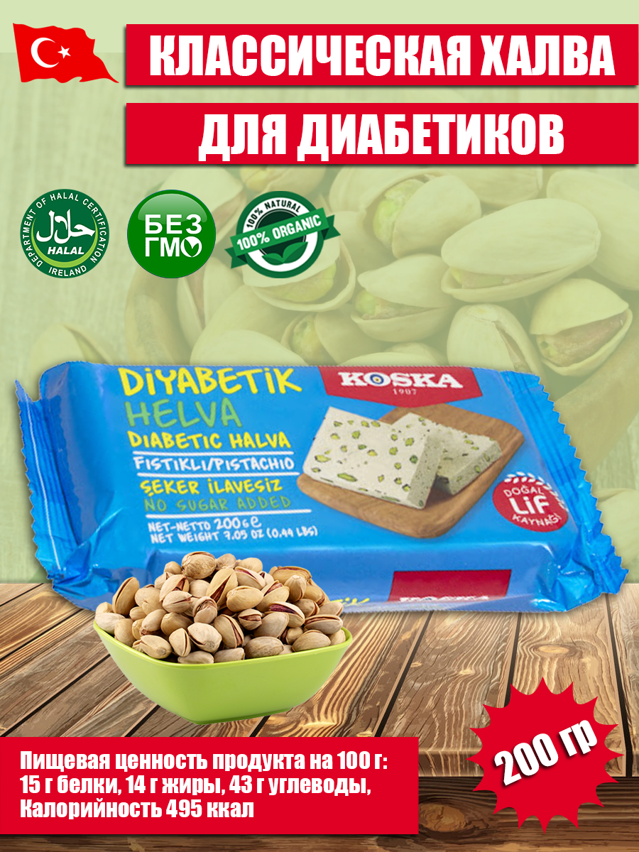 Халва кунжутная с фисташками без сахара 200гр KOSKA информация: