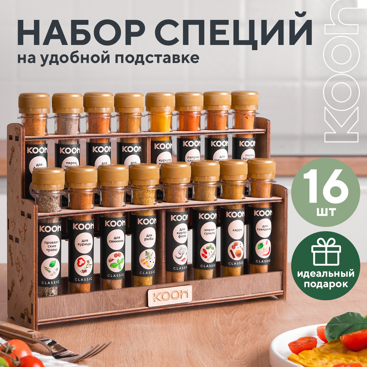 Набор специй Kooh, специи приправы и пряности 16 видов, подарочный набор информация: