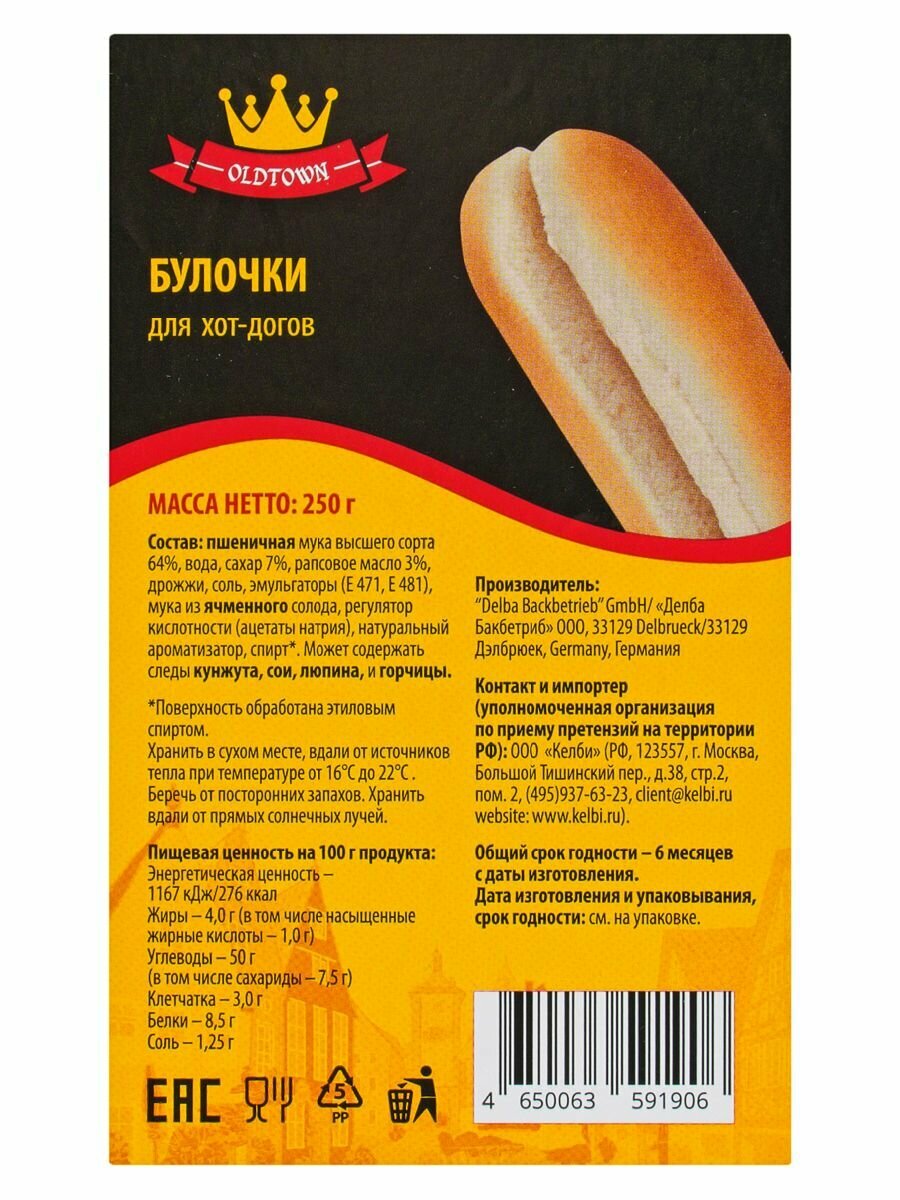 Булочки для хот-догов, комплект 2 уп по 250 гр, (8 булочек), OldTown информация: