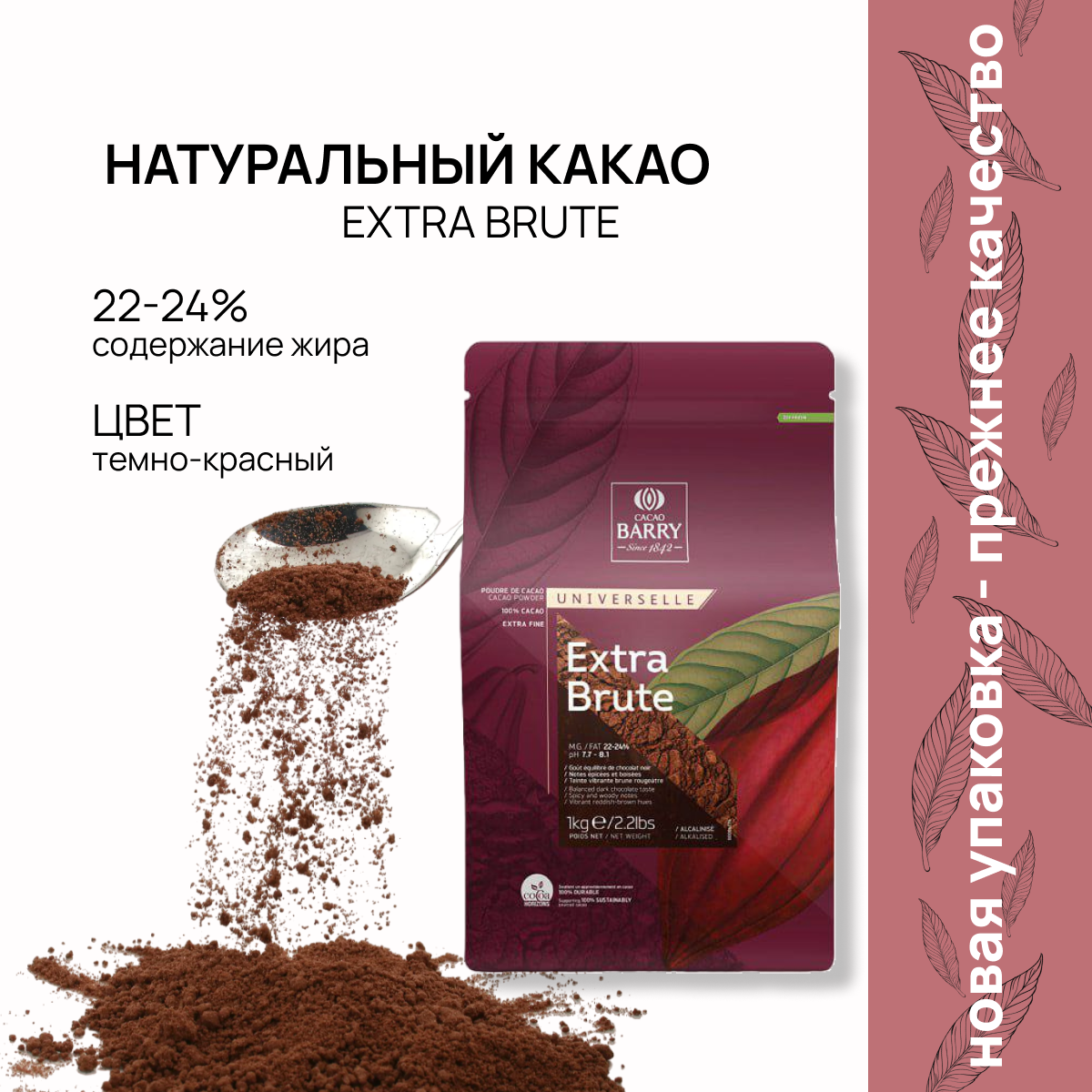 Какао-порошок Cacao Barry EXTRA-BRUTE, темно-красный алкализованный, 1 кг