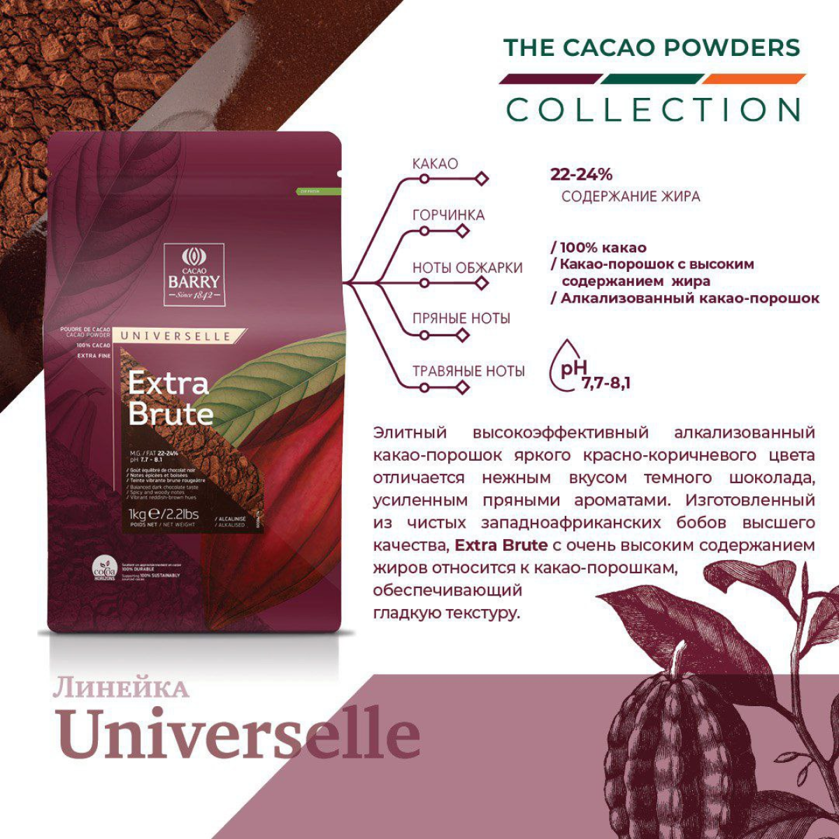 Какао-порошок алкализованный EXTRA-BRUTE (темно-красный) код DCP-22EXBRU-RT-89B, 1 кг информация: