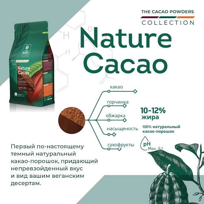 Какао-порошок Cacao Barry NATURE CACAO, 10-12%, 1 кг информация: