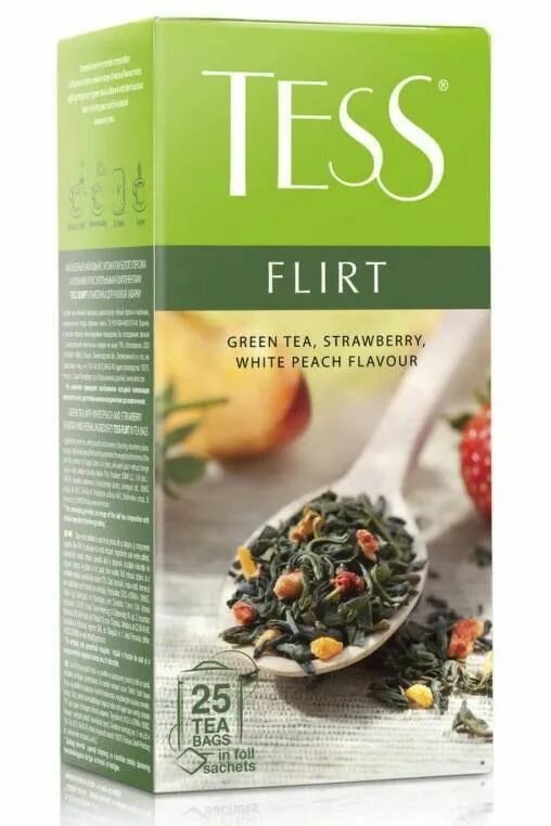 Чай в пакетиках зеленый Tess Flirt с клубникой и ароматом белого персика, 25 шт информация: