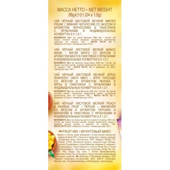 Чай ассорти Ahmad Tea Фруктовый Микс 4 вкуса 24 пакетика информация: