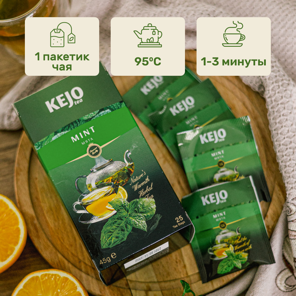 Травяной чай, мятный чай в пакетиках, MINT (Мята), чай с мятой, KejoTea, 25 шт. информация: