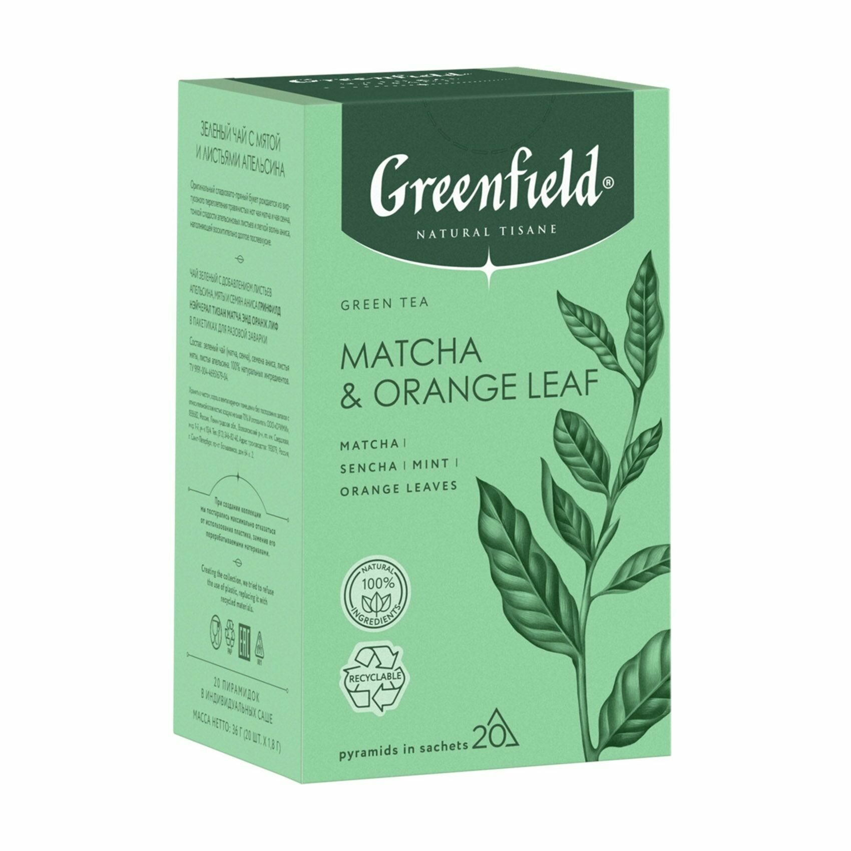 Чай в пирамидках зеленый Greenfield Natural Tisane Matcha & Orange Leaf (Матча энд Оранж Лиф), 20*1,8 г информация: