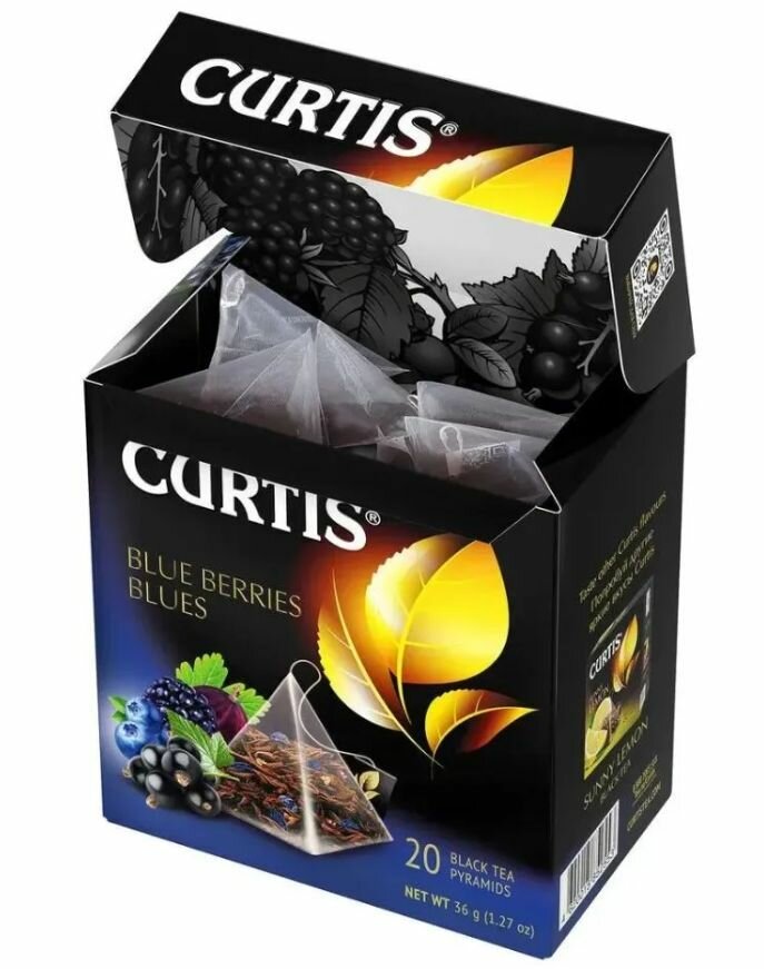 Чай черный Curtis "Blue Berries Blues" с ярким ягодным вкусом фруктовый ароматизированный 20 пирамидок 265 ₽
