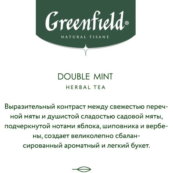 10 цен на Чай Greenfield NATURAL TISANE Double Mint, травяной/фруктовый, 20 пак/упак, пирамидки