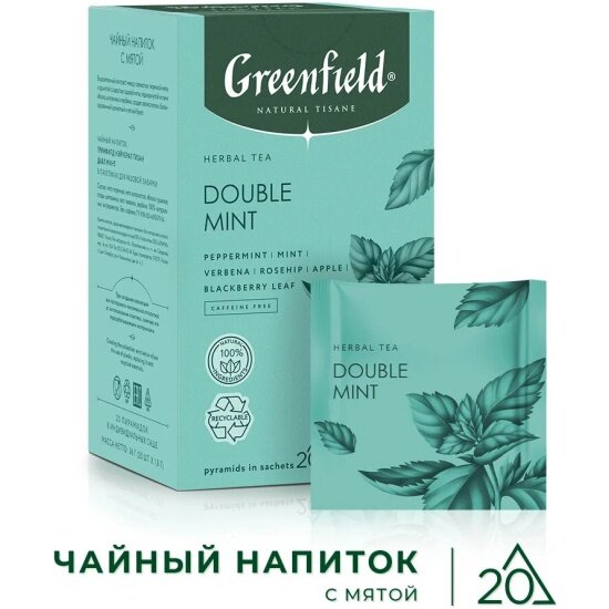 Чай Greenfield NATURAL TISANE Double Mint, травяной/фруктовый, 20 пак/упак, пирамидки информация: