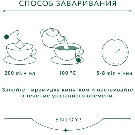 Способ приготовления | Положить в заварочный чайник или чашку по одному пакетику на человека. Залить кипятком и настаивать 2-3 минуты. |