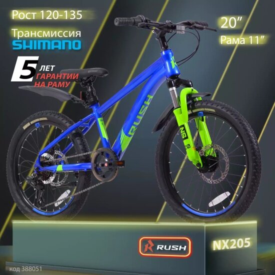 Детский велосипед Rush Hour 20" NX 205 DISC ST синий рама 11" 6ск информация:
