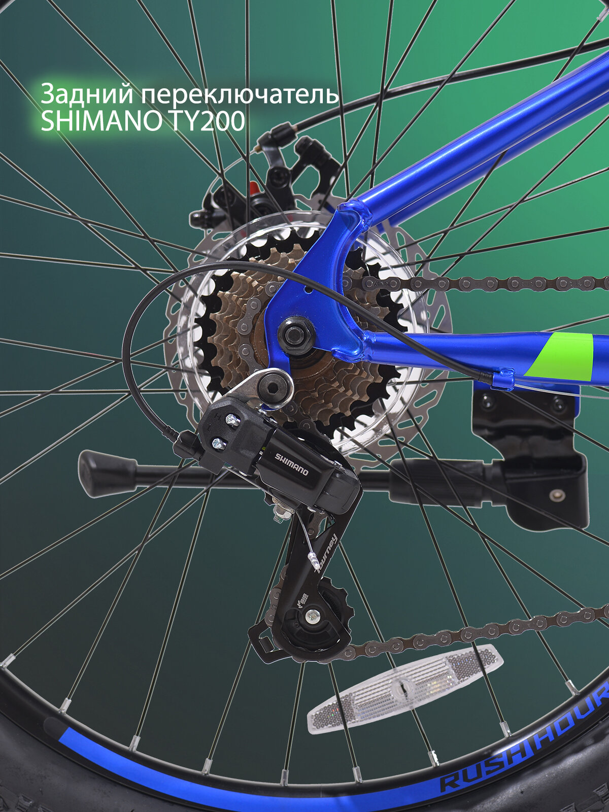 Велосипед подростковый горный дисковый 24" рост 130-145см 7 скоростей синий рама 13" велик для 9 лет 7 лет 8 лет переключатель SHIMANO скоростной RUSH HOUR NX 405 информация: