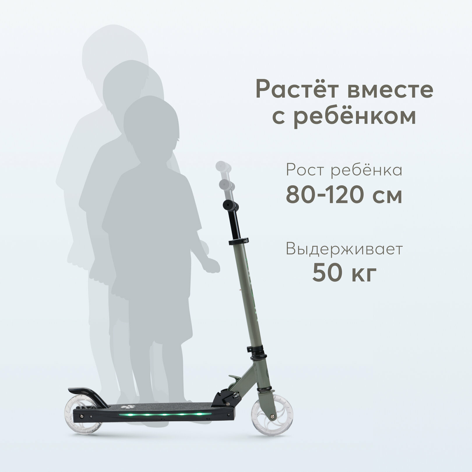 10 цен на 50036, Самокат Happy Baby NEONIX, со светящимися колесами, высота руля регулируется, темно-зеленый
