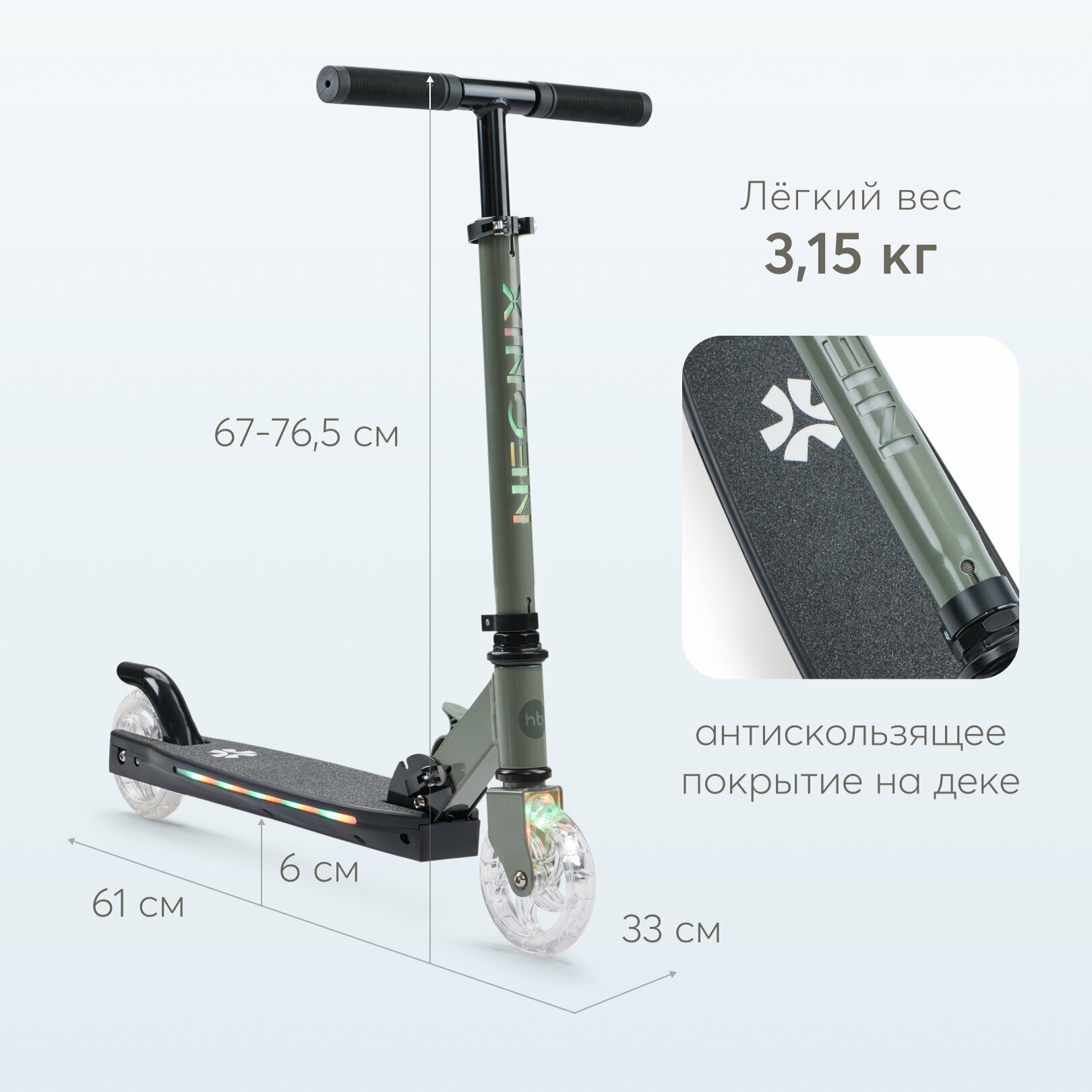 Отзывы на 50036, Самокат Happy Baby NEONIX, со светящимися колесами, высота руля регулируется, темно-зеленый
