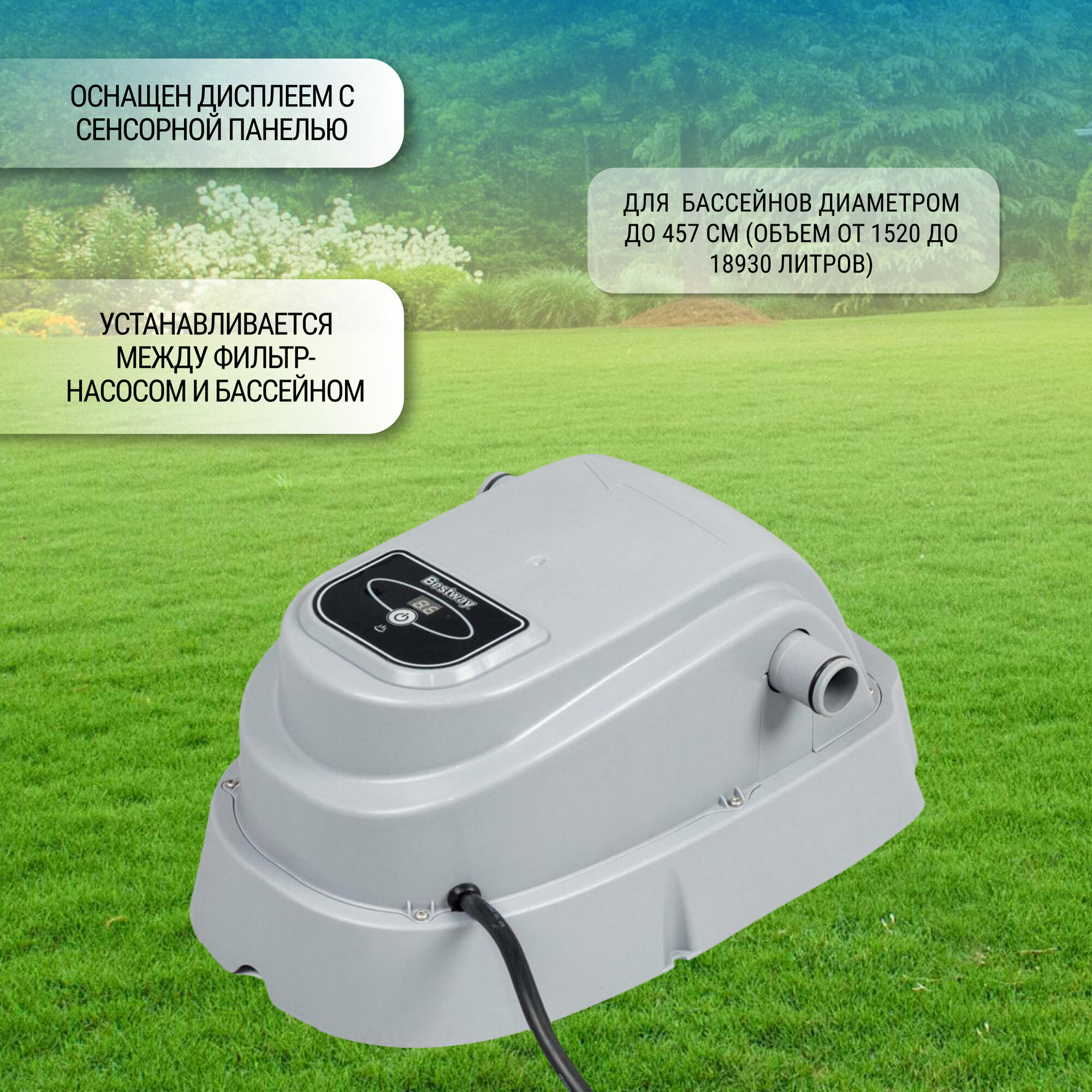 Проточный водонагреватель для бассейна Bestway (58259), мощность: 2800 Вт, для бассейнов до 17000 л информация: