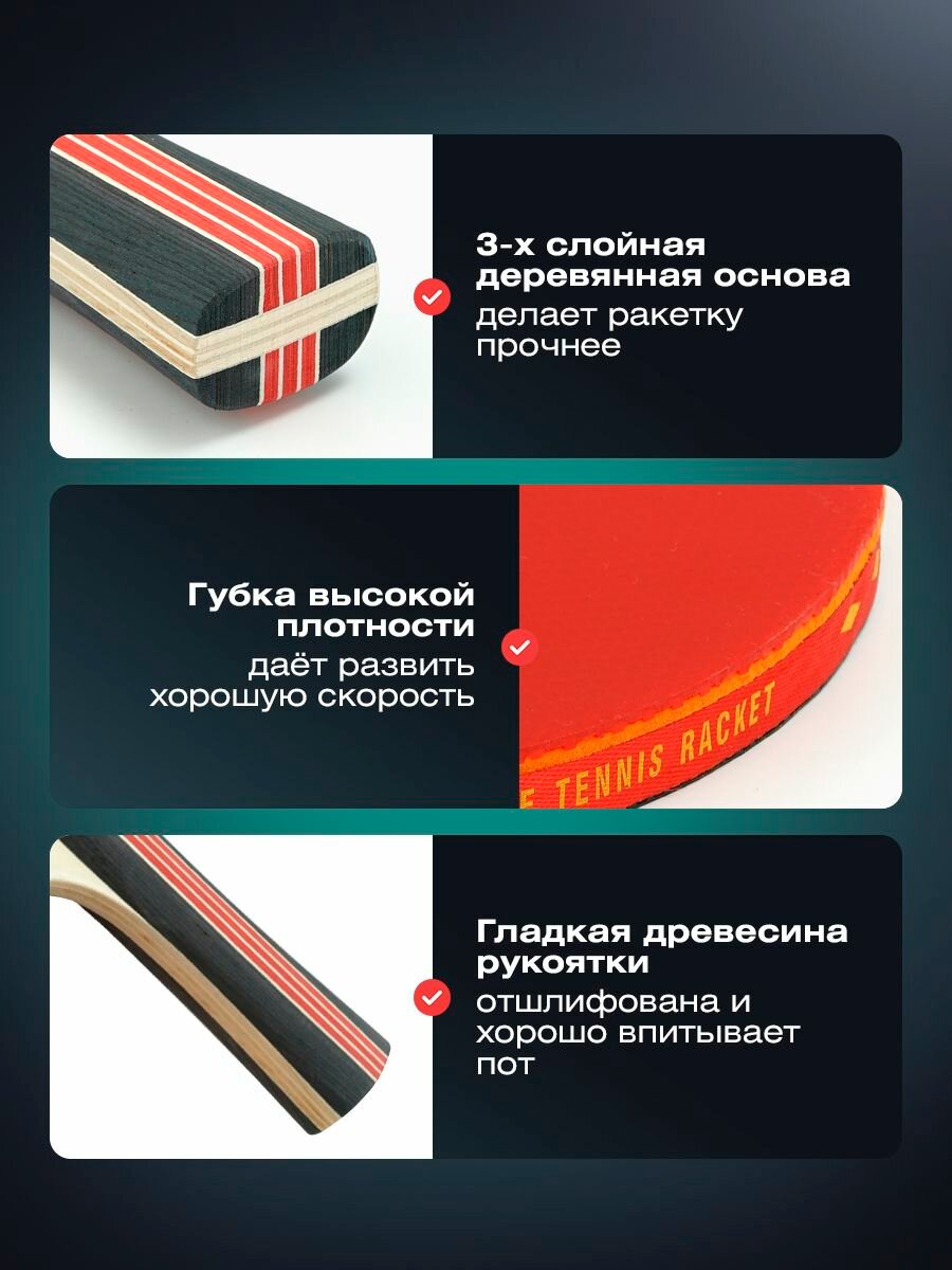 Ракетка для настольного тенниса 3* для атакующей игры, коническая рукоять Ракетка для настольного тенниса 3* для атакующей игры, коническая рукоять