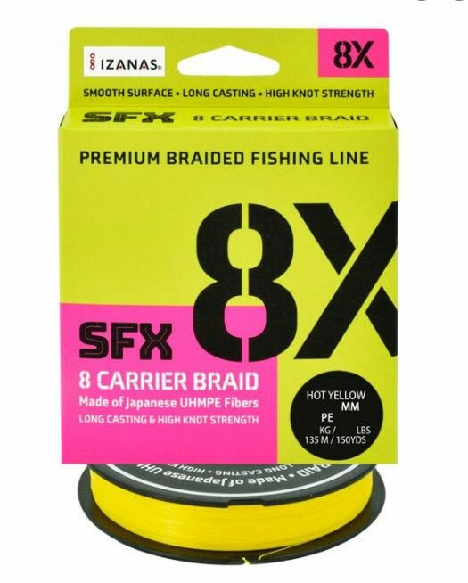 Отзывы на Плетеный шнур для рыбалки SFX 8X длина 135 м, диаметр 0.235 мм, цвет желтый, SUFIX леска