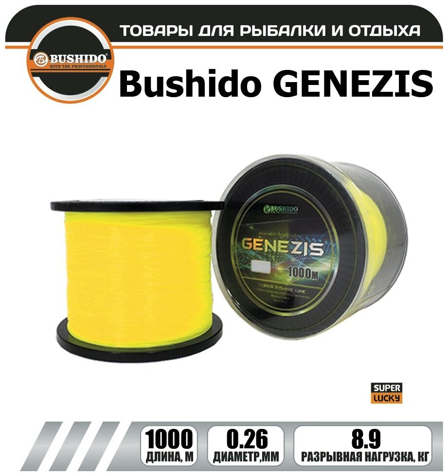 Леска рыболовная BUSHIDO GENEZIS (1000м); (d - 0,26мм); (тест - 8,9кг) информация: