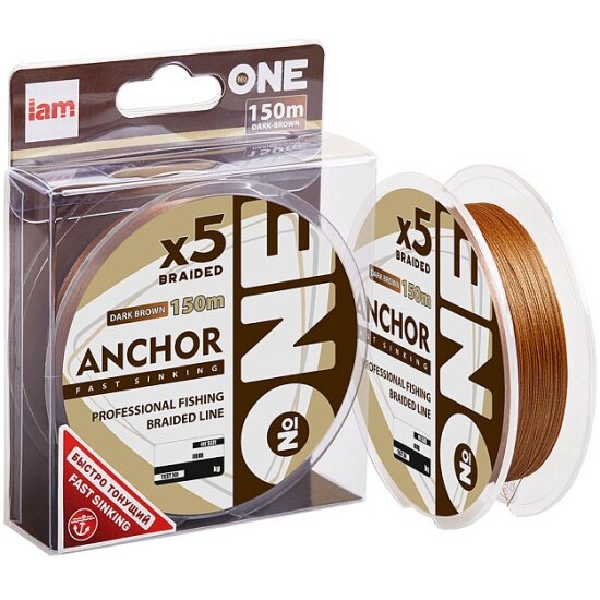 Тонущая плетеная леска IAM №ONE ANCHOR 5x 150m, диаметр 0,12 мм Тёмно-коричневый