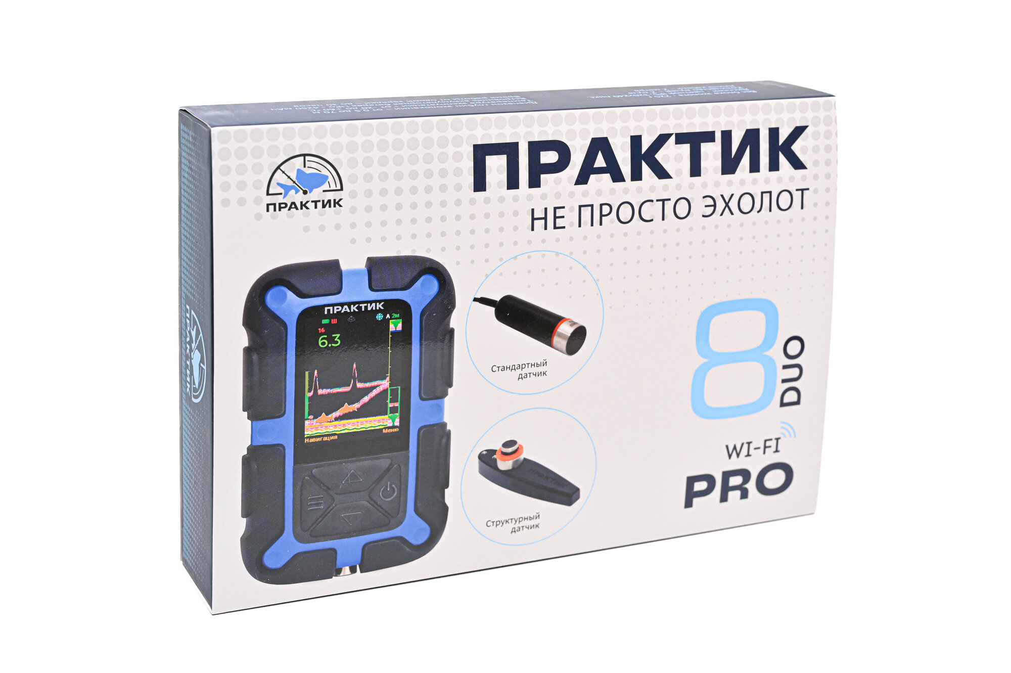 Эхолот Практик 8 PRO Wi-Fi DUO для летней и зимней рыбалки, в комплекте 2 датчика информация: