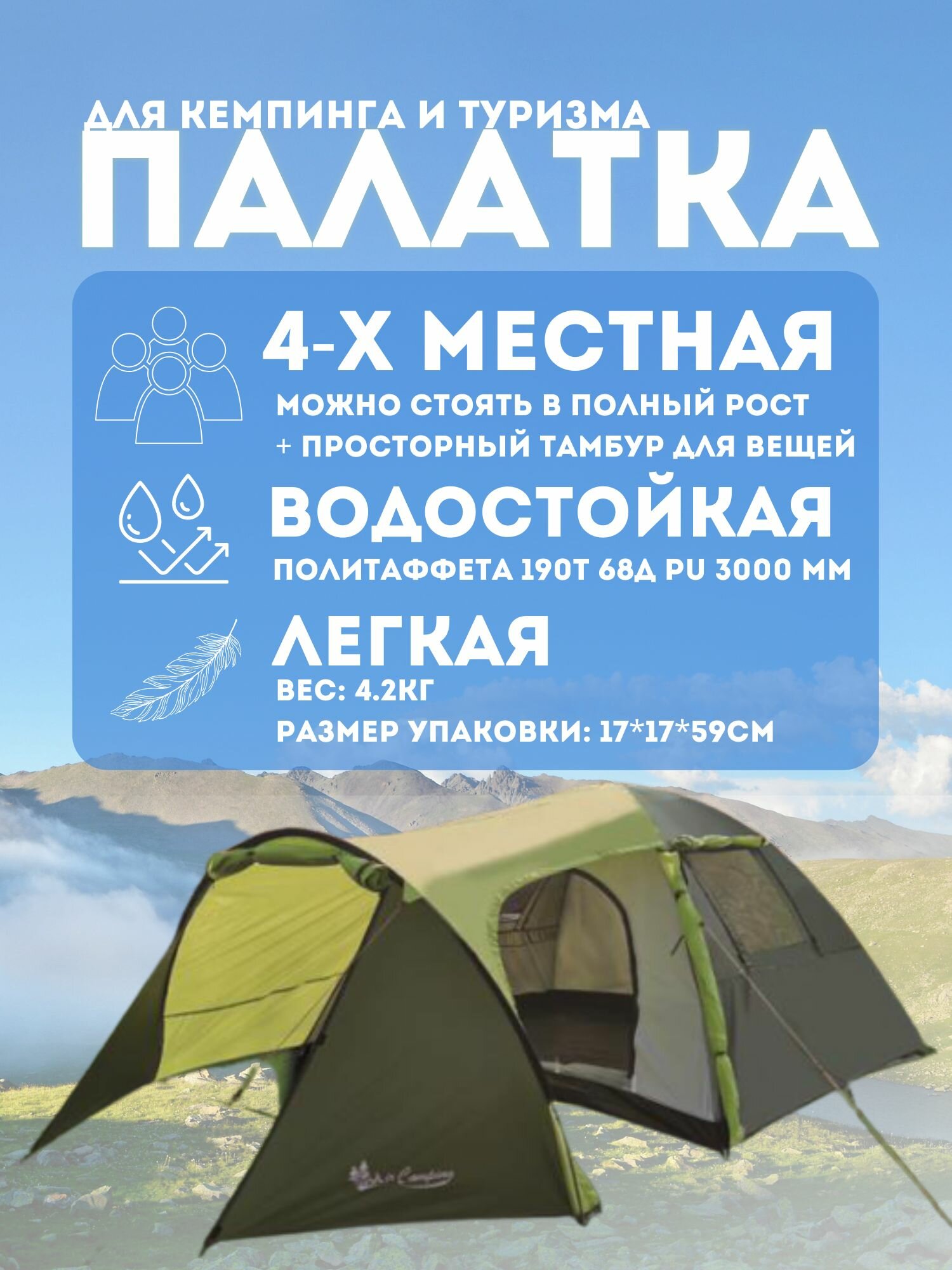 Туристическая 4-х местная палатка Mimir ART1036 информация: