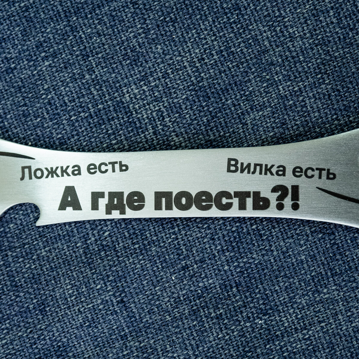 Отзывы на Походная ложка-вилка Фотонные коты "А где поесть?", мультитул 5-в-1 для туризма с забавной надписью