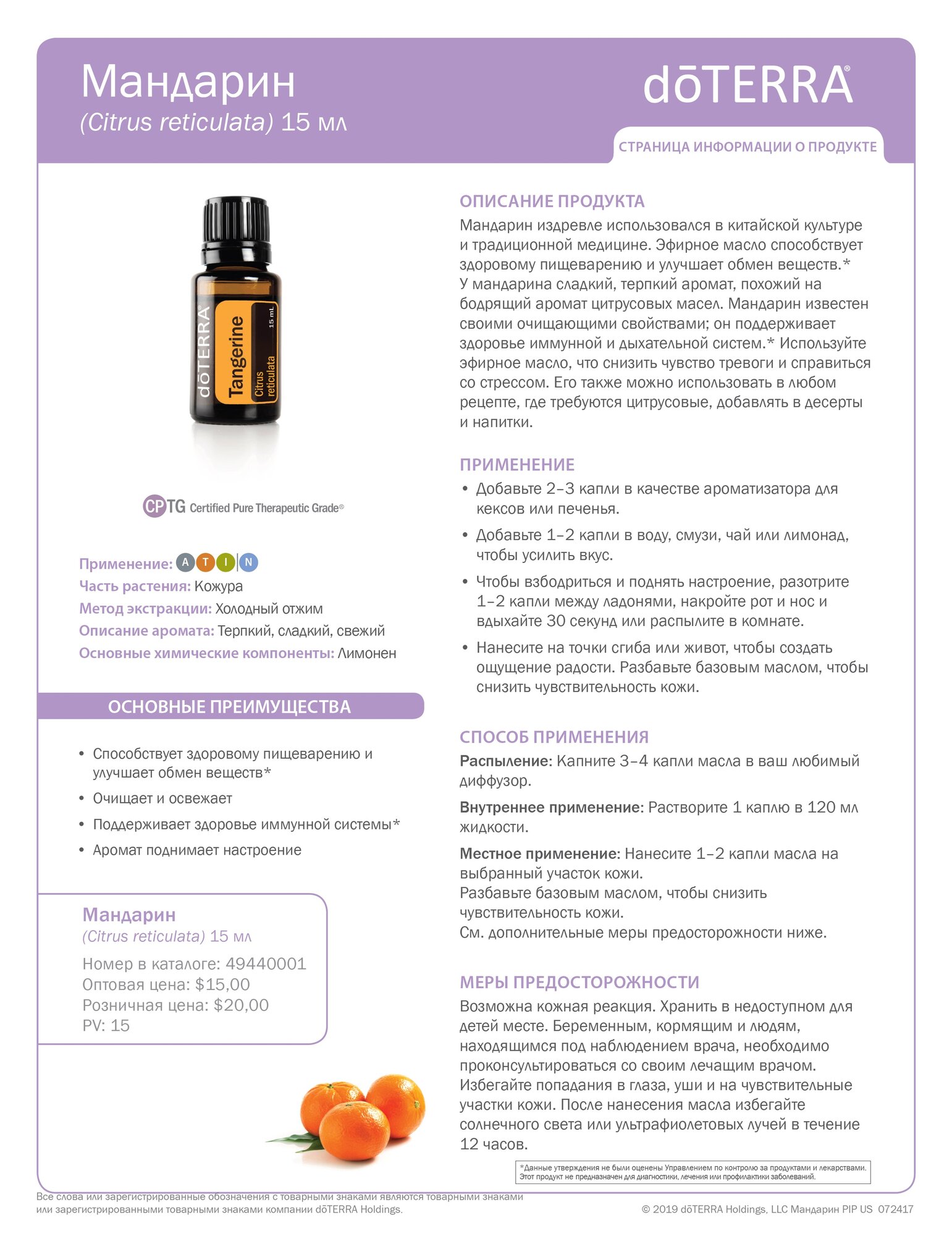 Эфирное масло doTERRA Мандарин, 15 мл информация: