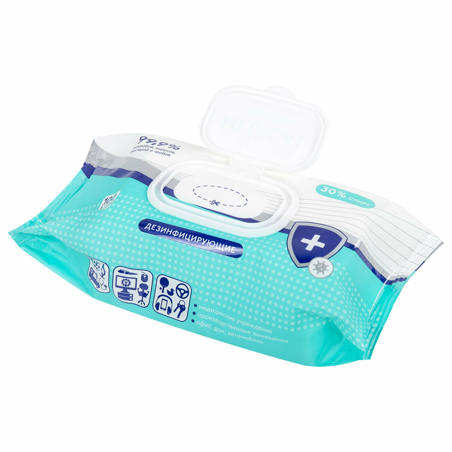 | Состав | изопропиловый спирт – 30%, алкилдиметилбензиламмоний хлорид – 0,03%, а также функциональные и технологические компоненты |