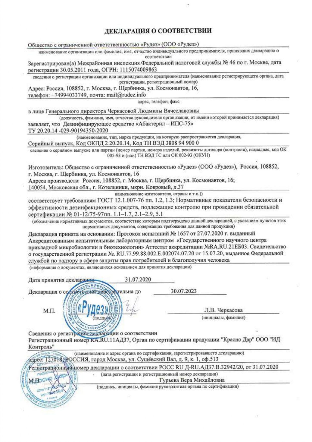 | Номер документа о соответствии | RU.77.99.88.002.Е.002074.07.20 |