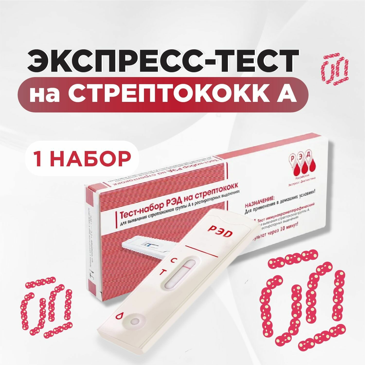 10 цен на Тест на стрептококки РЭД, для анализа мазка из ротоглотки