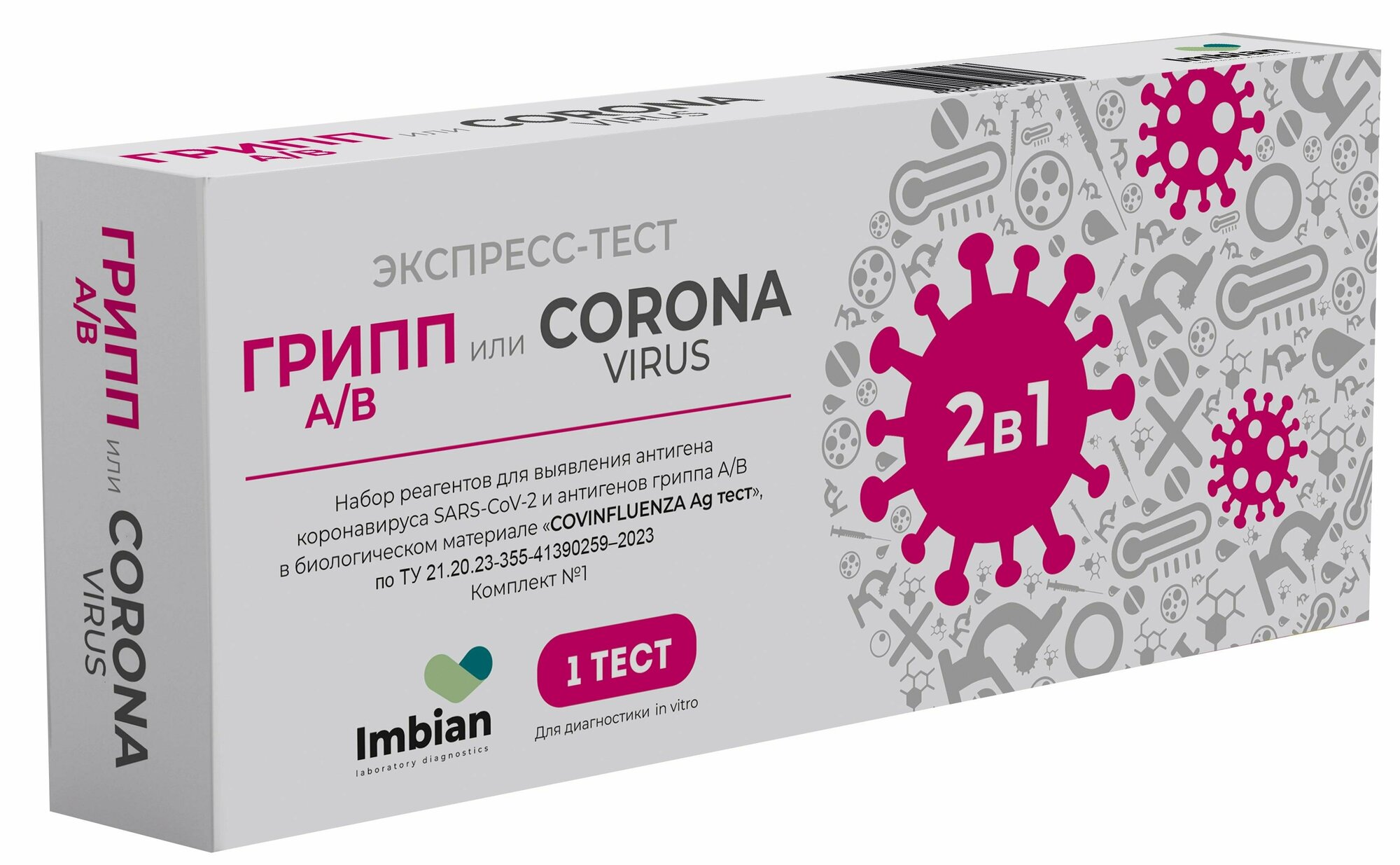 Тест Экспресс на антиген 2в1, Covid-19+грипп А/В, Imbian, 1шт iKR-004/1.1 информация: