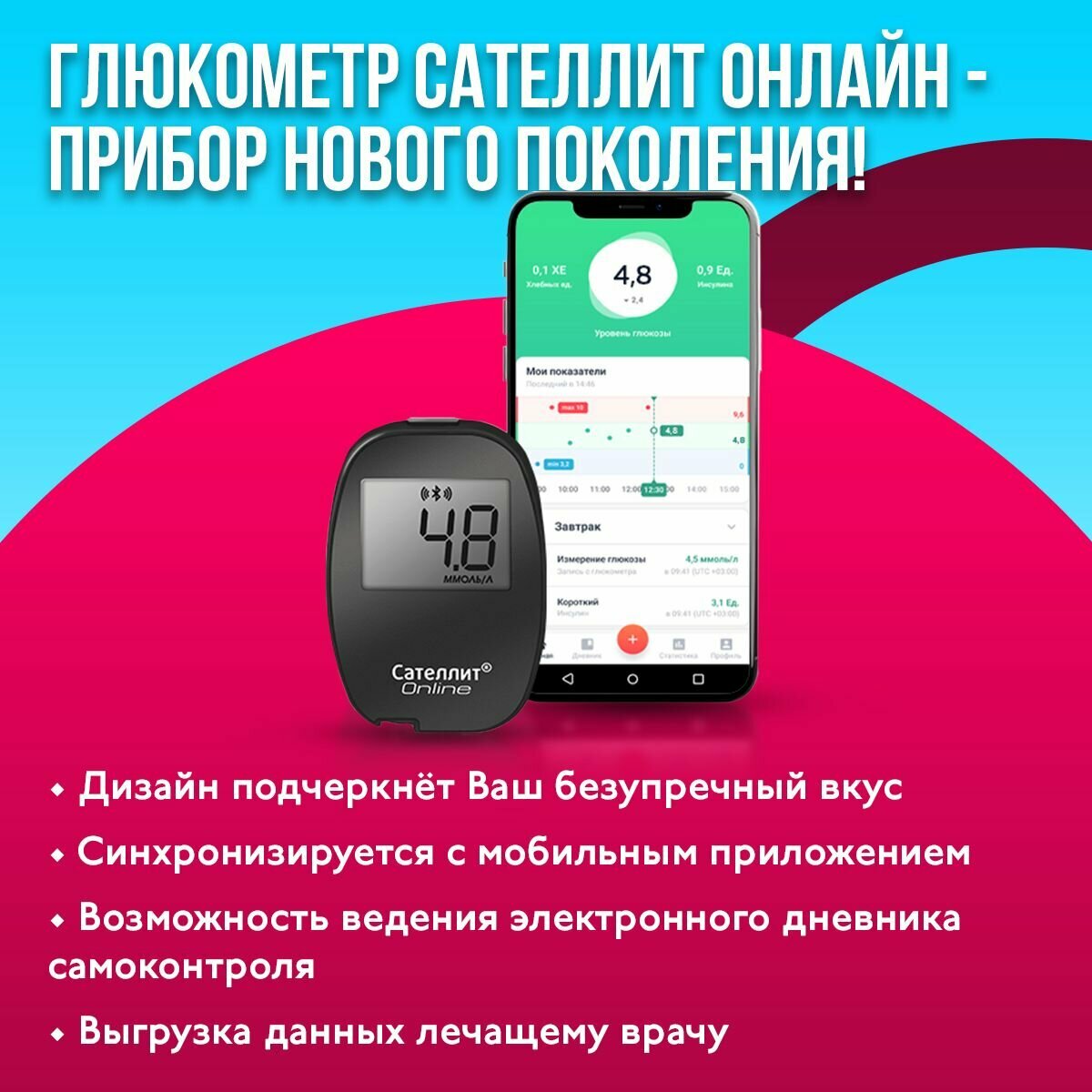 Глюкометр Сателлит Online (Онлайн) + тест-полоски Экспресс (25 шт.) + ручка-прокалыватель в наборе, измеритель сахара в крови информация: