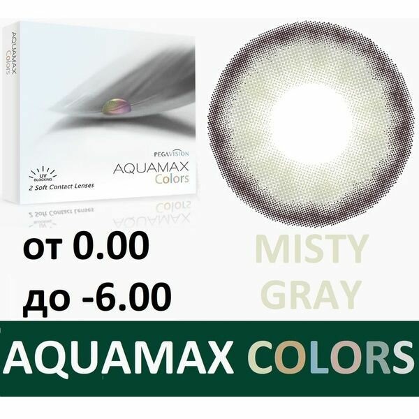 Цветные линзы Pegavision Aquamax Colors 2 линзы R 8.6 SPH -0.00 Misty gray (светло-серые) D 14.2, ежемесячные 702 ₽