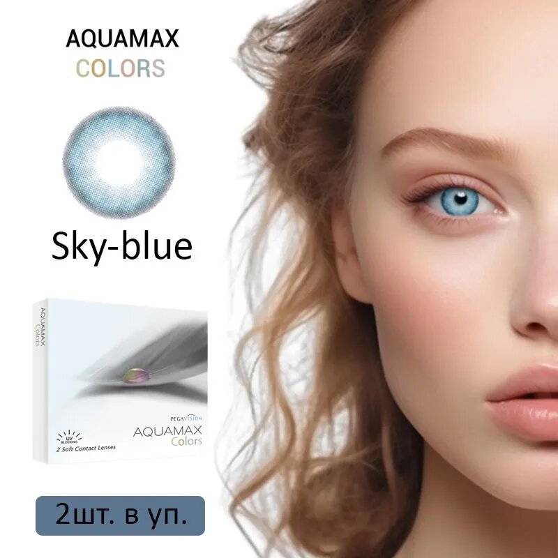 Цветные линзы Pegavision Aquamax Colors 2 линзы R 8.6 SPH -5.50 Sky-blue (голубые) D 14.2, ежемесячные