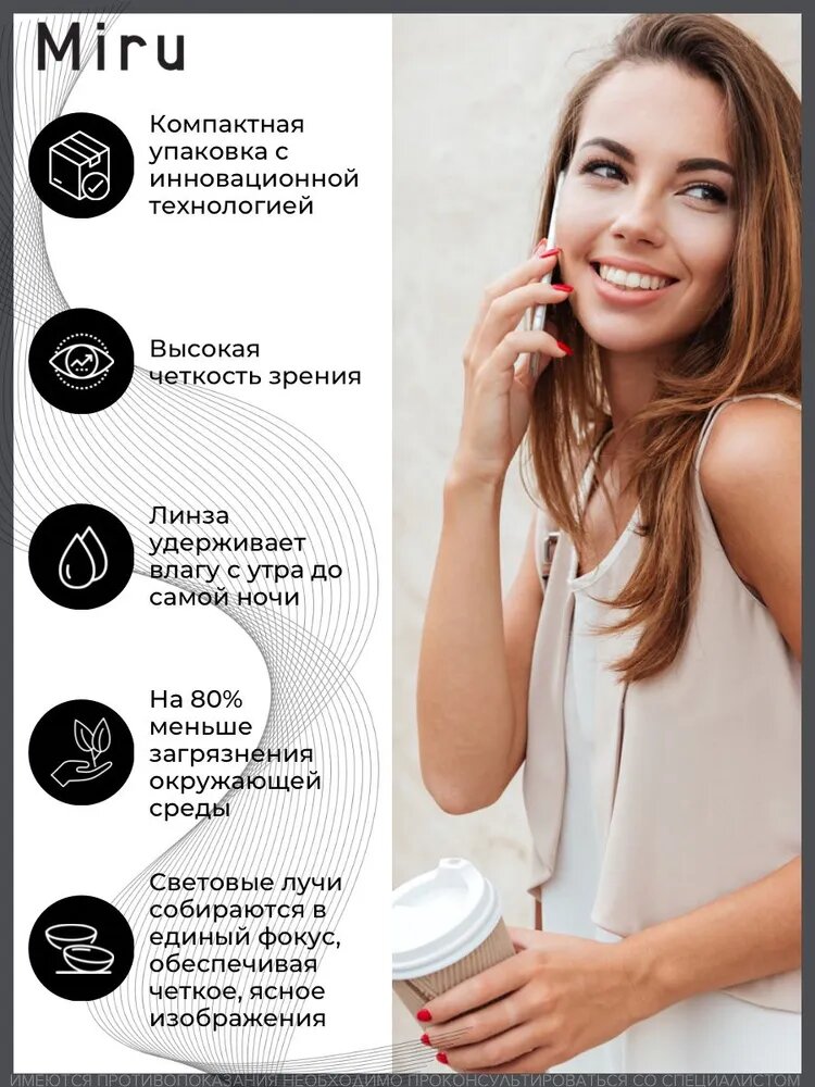 | Дополнительная информация | Контактные линзы Miru 1day отличаются высокой оптической точностью, изготовлены из устойчивого к дегидратации, биосовместимого материала Хайоксифилкон А (HEMA-GMA Hioxifilcon A) с хорошо смачиваемой поверхностью для максимально комфортного использования в течение дня. |