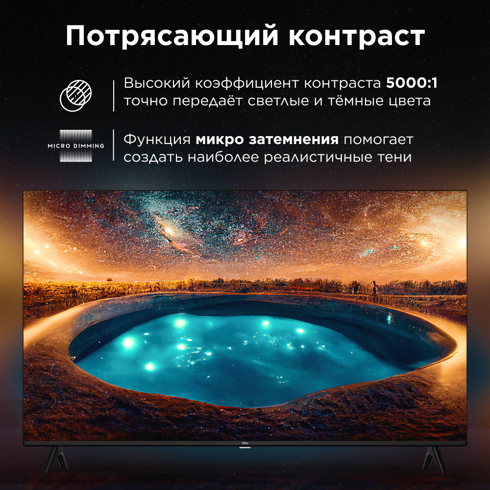 Телевизор TCL 43C655, разрешение 4К, 3840x2160, Google TV, черный 30 599 ₽