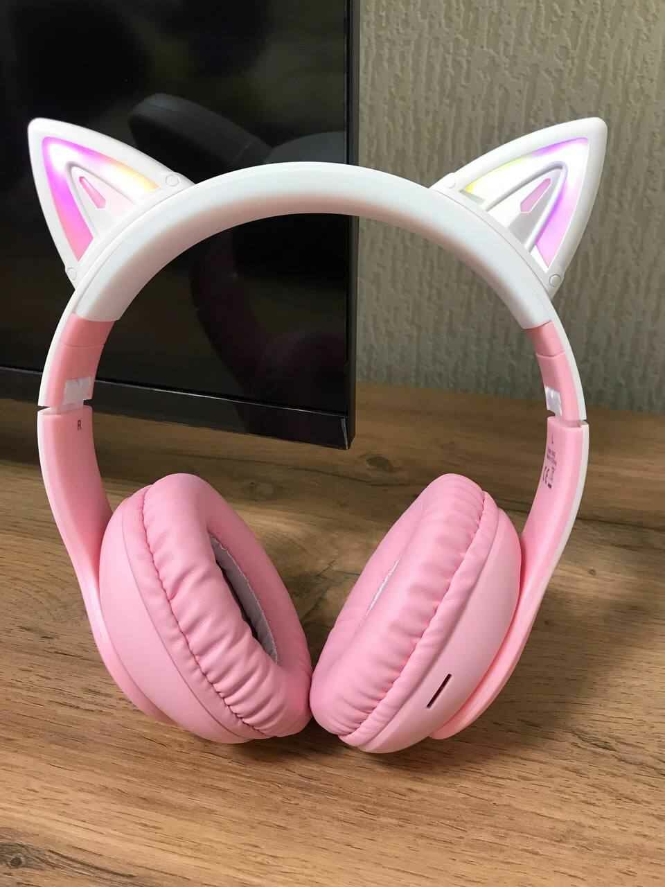 Наушники беспроводные большие детские с ушками светящиеся Hoco W42 розовые