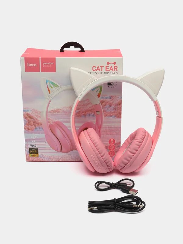 hoco Беспроводные детские наушники с кошачьими ушками светящиеся Hoco W42 Premium розовые Розовый 1 384 ₽