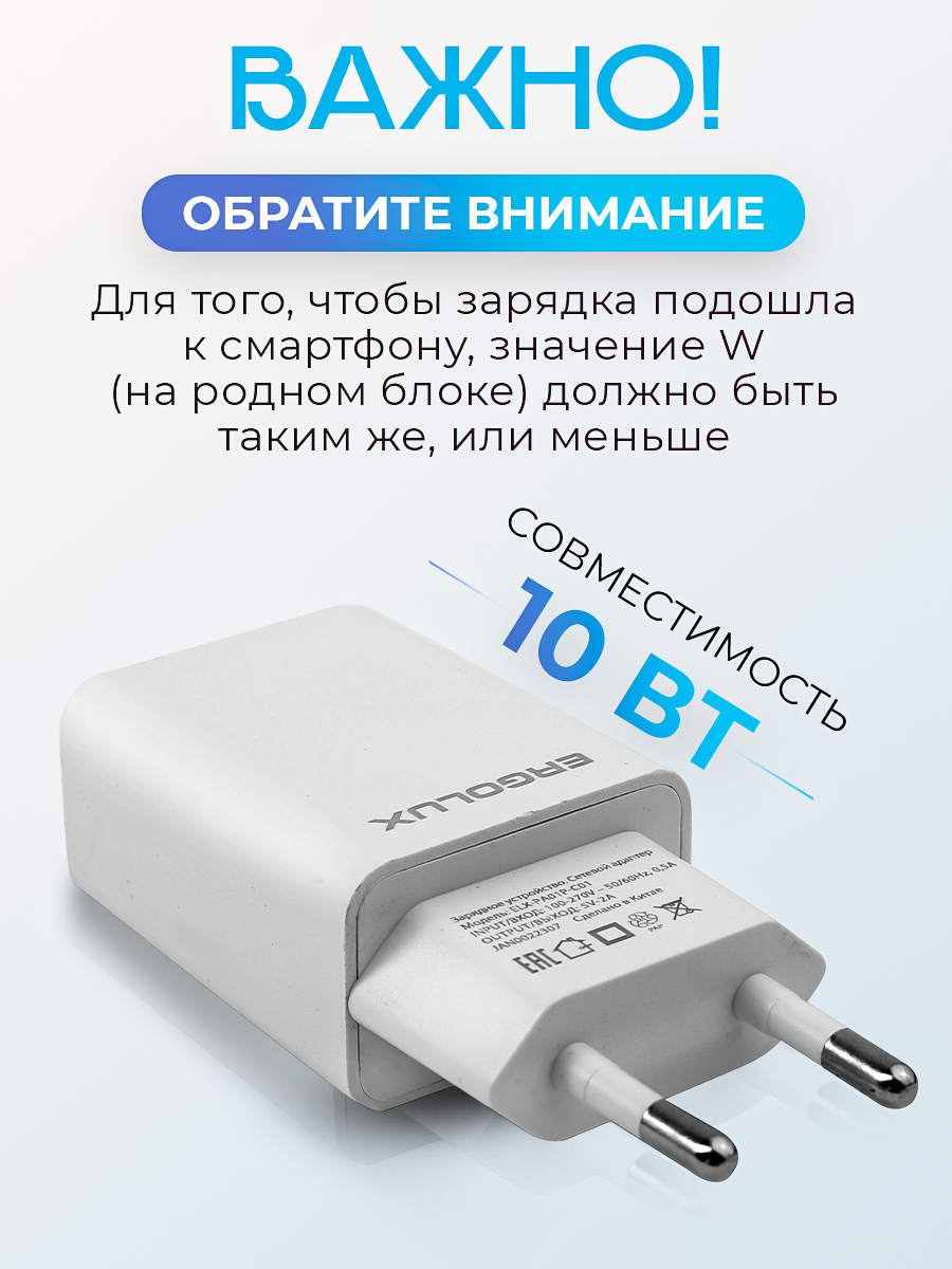 Блок питания ERGOLUX зарядное устройство с мощностью 10 Вт информация: