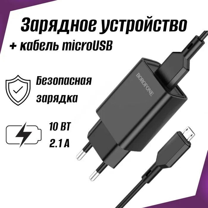 Отзывы на Сетевое зарядное устройство 1USB Borofone BA68A, Glacier, с кабелем микро USB, 5V/2.1A черное