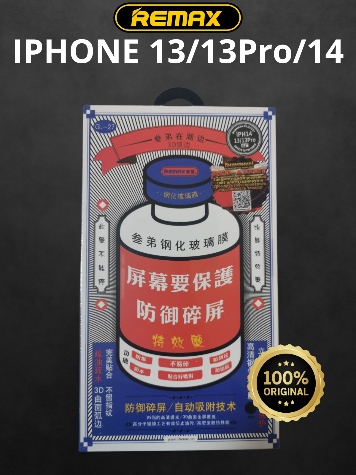 Защитное стекло для iPhone/ Айфон 13/13 Pro/14 3D Remax GL-27, с черной рамкой информация: