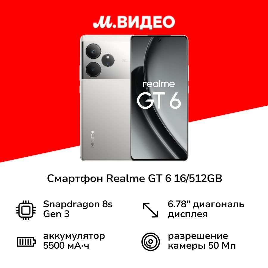 10 цен на Смартфон realme GT 6 16/512GB Silver