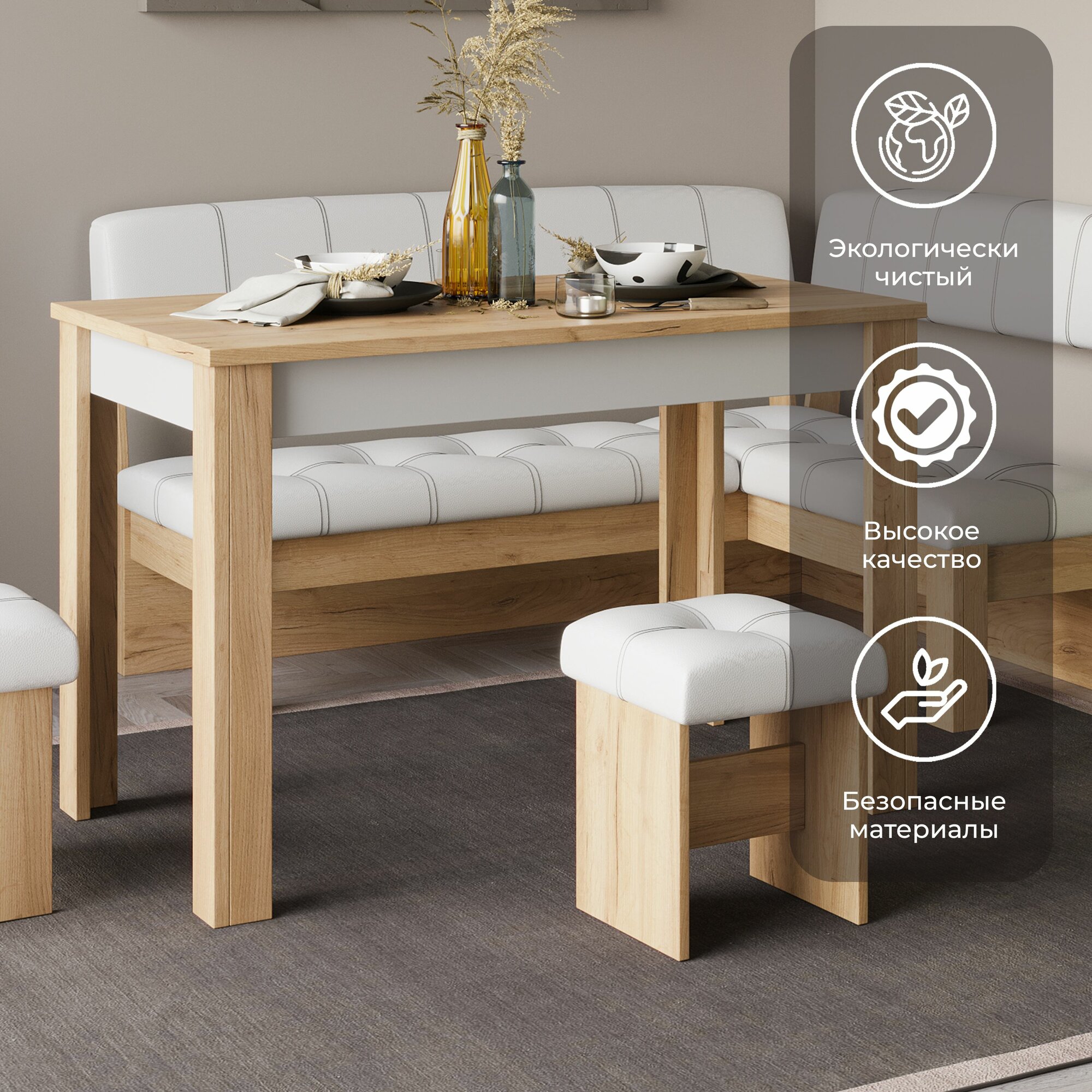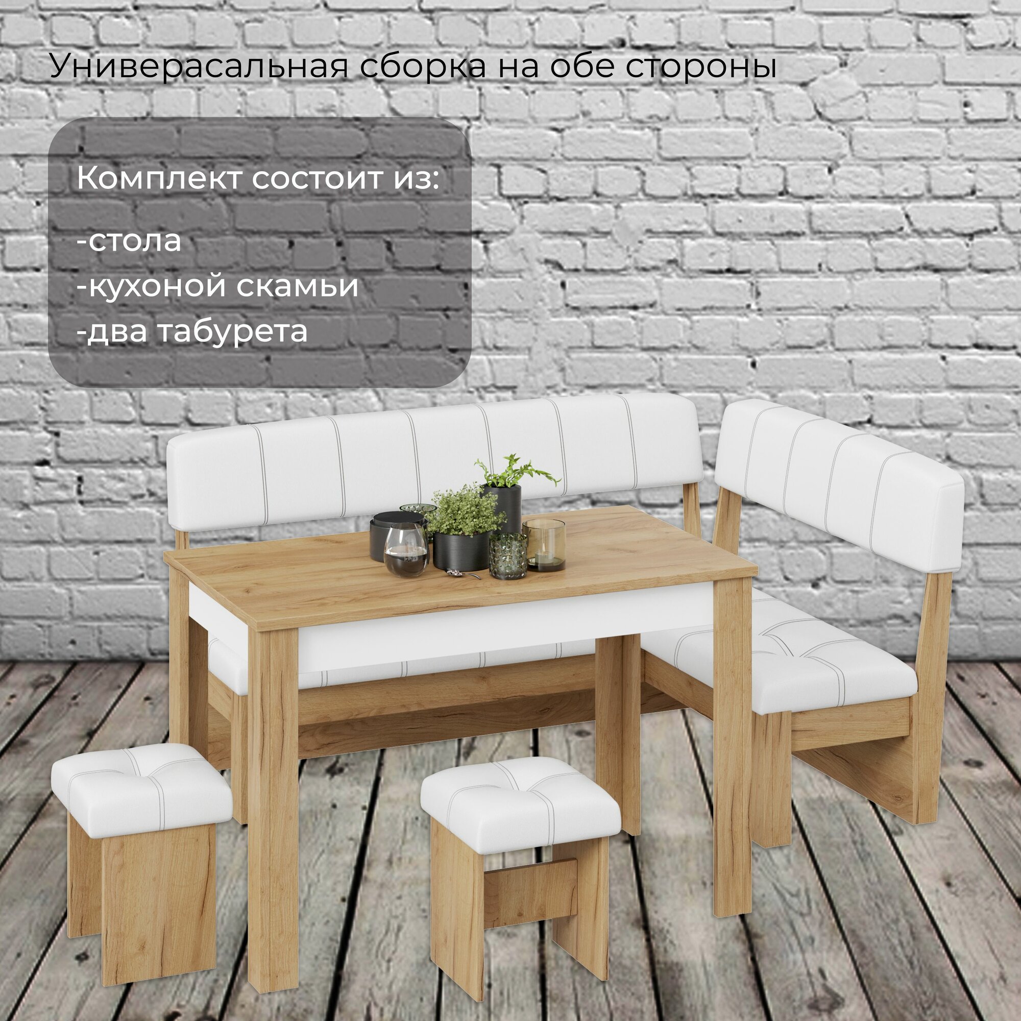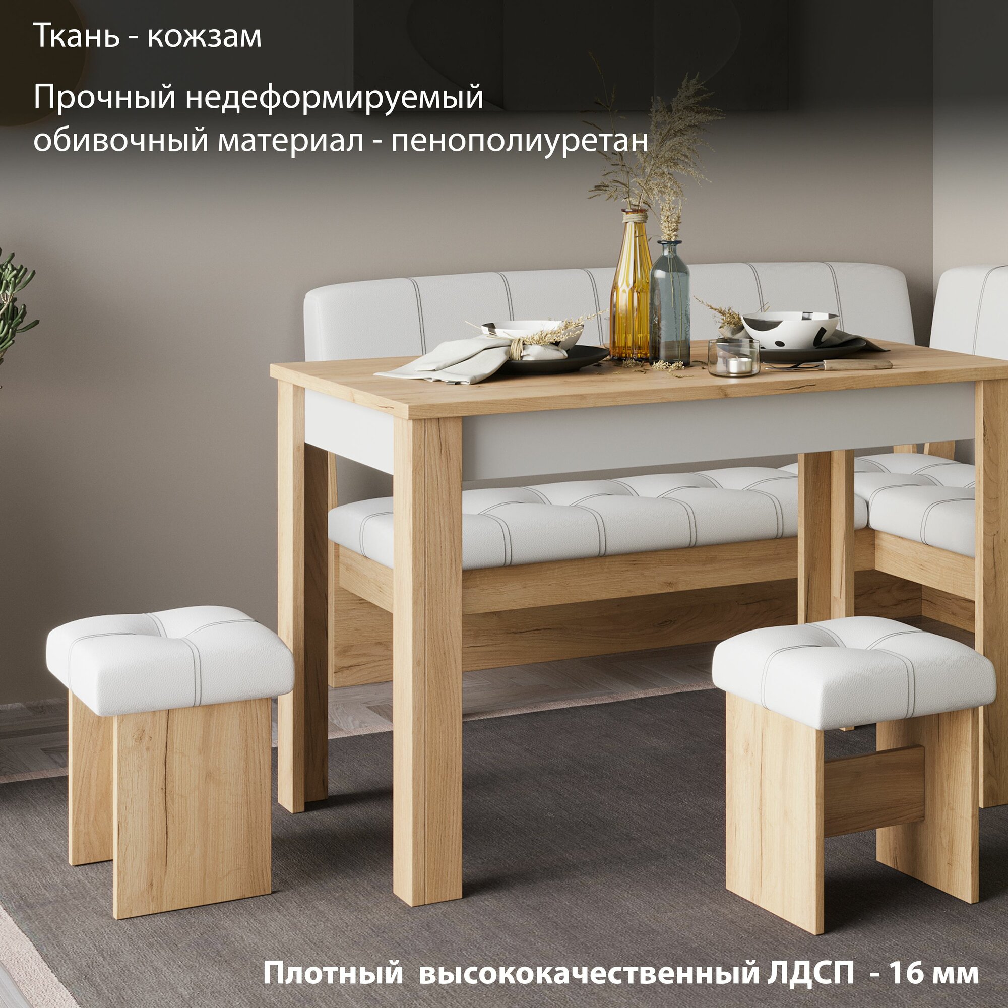 10 цен на Кухонный уголок со столом и табуретами Альфа (Дуб крафт золотой/Белый кожзам)