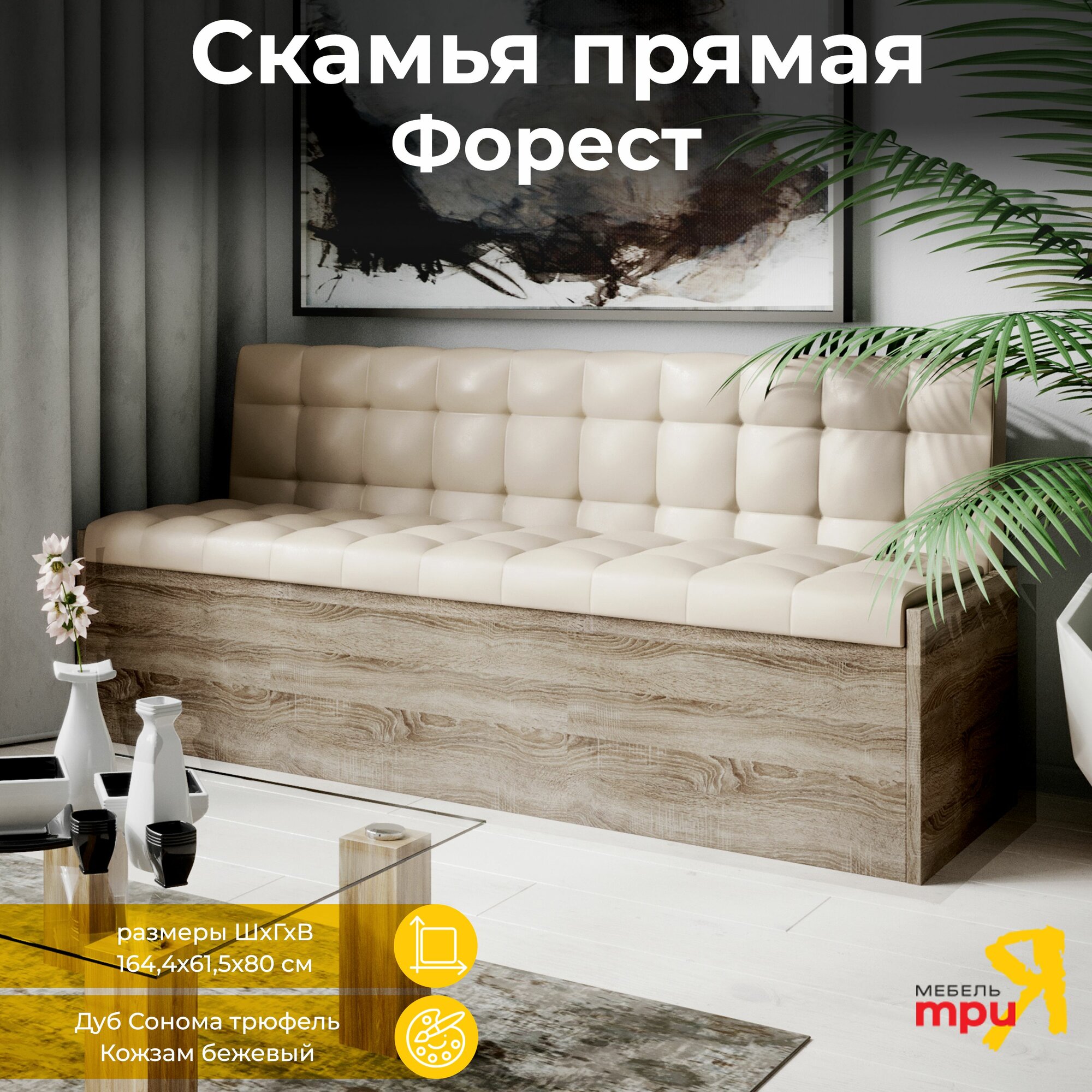 Кухонный диван скамья прямая бежевый (ВхШхГ) 80х164х61 см, Форест 22 599 ₽