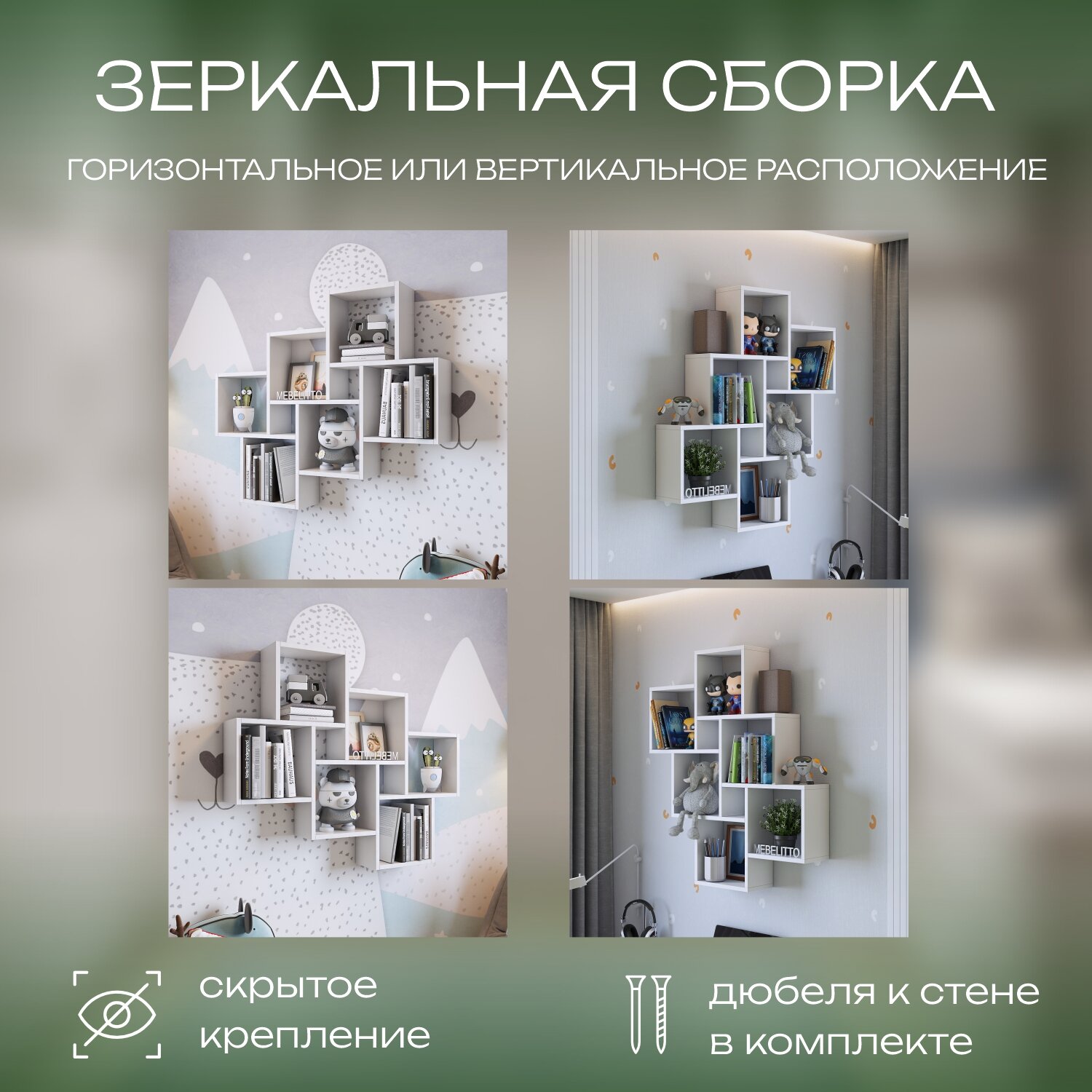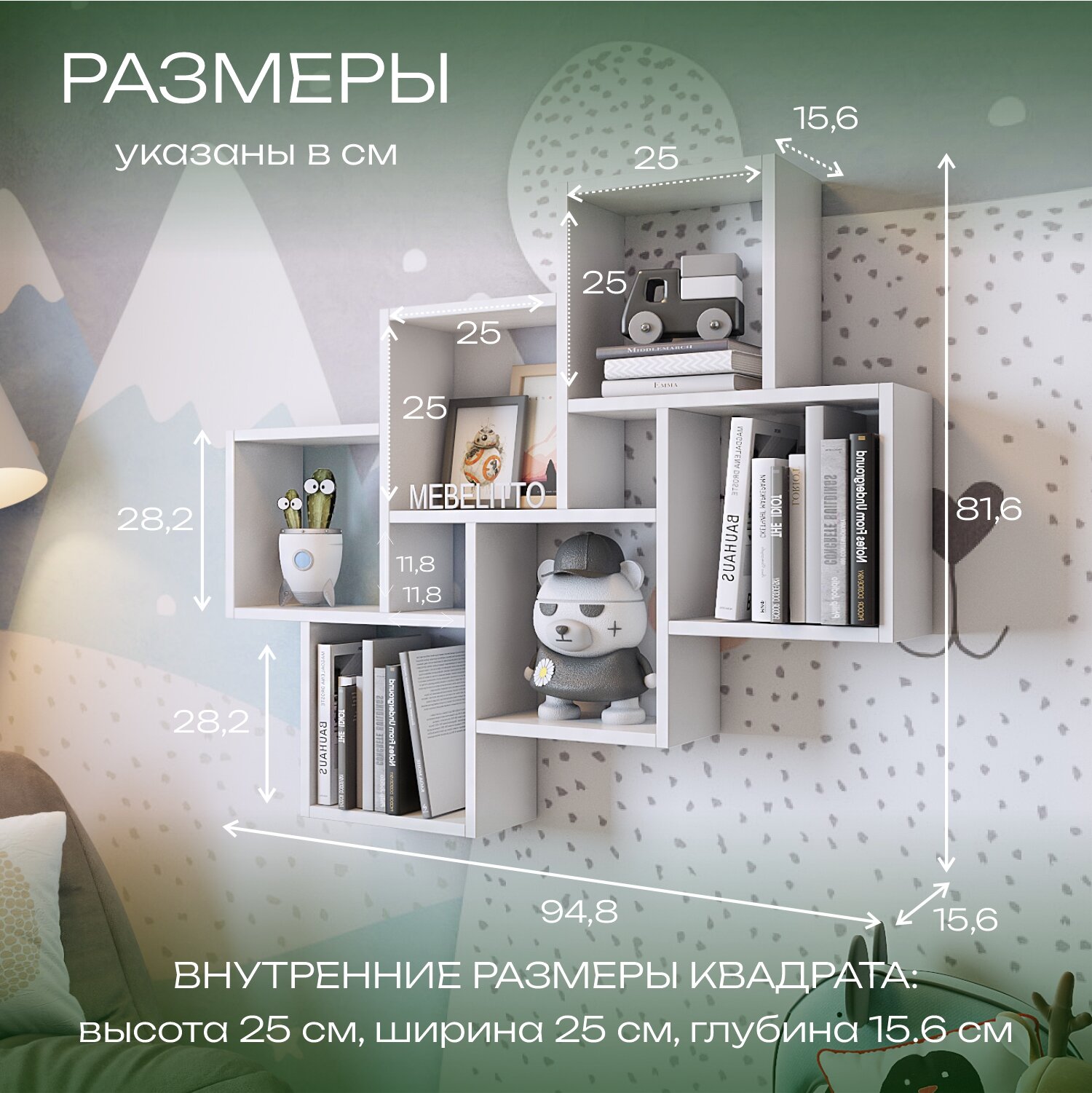 10 цен на Mebelitto Полка "Квадро" настенная, деревянная для книг в гостиную и спальню / белая
