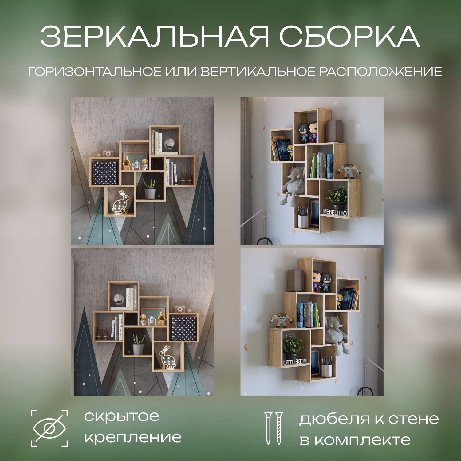 Отзывы на Mebelitto Полка "Квадро" настенная, деревянная для книг в гостиную и спальню / дуб сонома